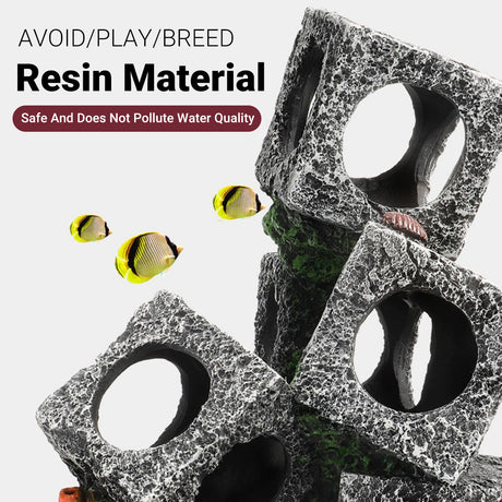 Aquarium Shrimp Shelter 3-Cube Stone Cave Breeding Hiding Decor