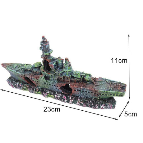 Aquarium Shipwreck Ornament 23cm Resin Sunken Ship Hiding Decor