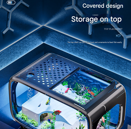 Desktop Aquarium 40cm Turtle Tank Panoramic Basking Platform Cream
