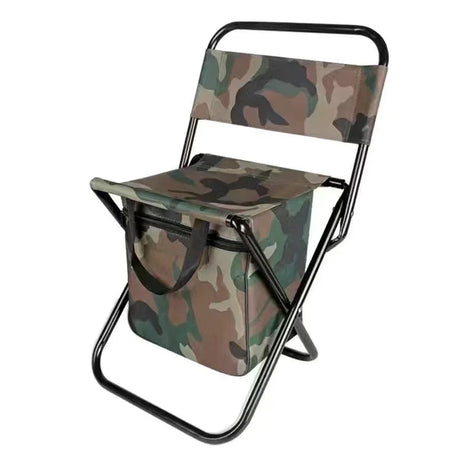 Camping Chair 3-in-1 Folding with 10L Cooler Bag Military Green - Portable Backpack Stool