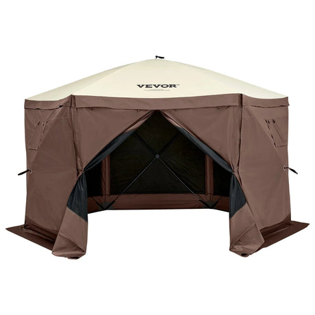 VEVOR Pop Up Gazebo Tent 6 Sided Screen 11.5x11.5ft Mosquito Netting Brown