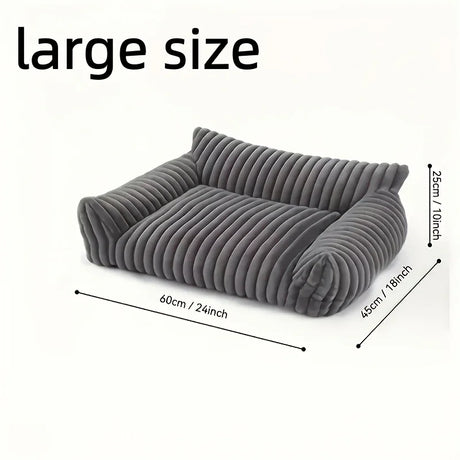 High-Elasticity Warm Cat Bed - 45x30x19cm Striped Fleece Removable