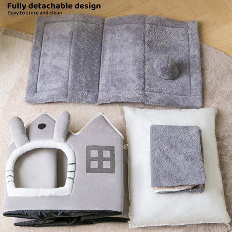 Removable Washable Cat House - Four Seasons Enclosed Pet Bed Brown S