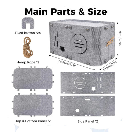 Felt Cat House - Foldable Breathable Pet Bed 45x35x35cm
