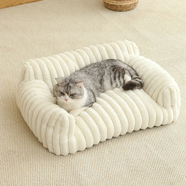 White Comfortable Cat Sofa - Cute Soft Cat Bed with Breathable Sleeping Basket
