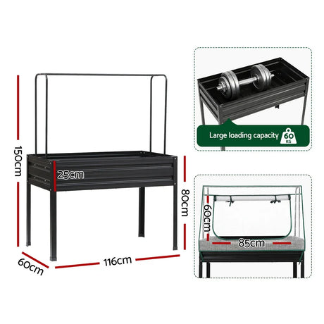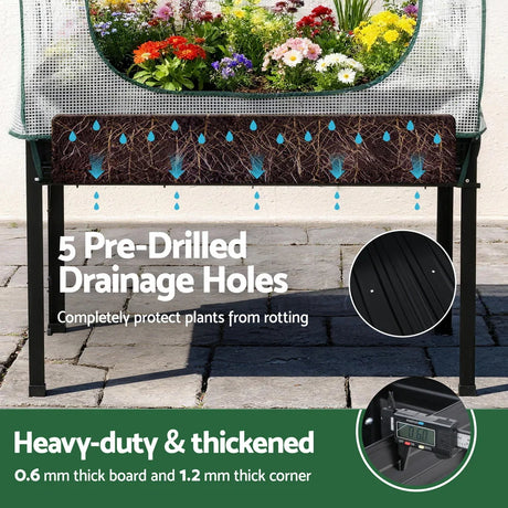 Green Fingers Elevated Metal Garden Bed Kit w Mini Greenhouse Cover 116x60cm
