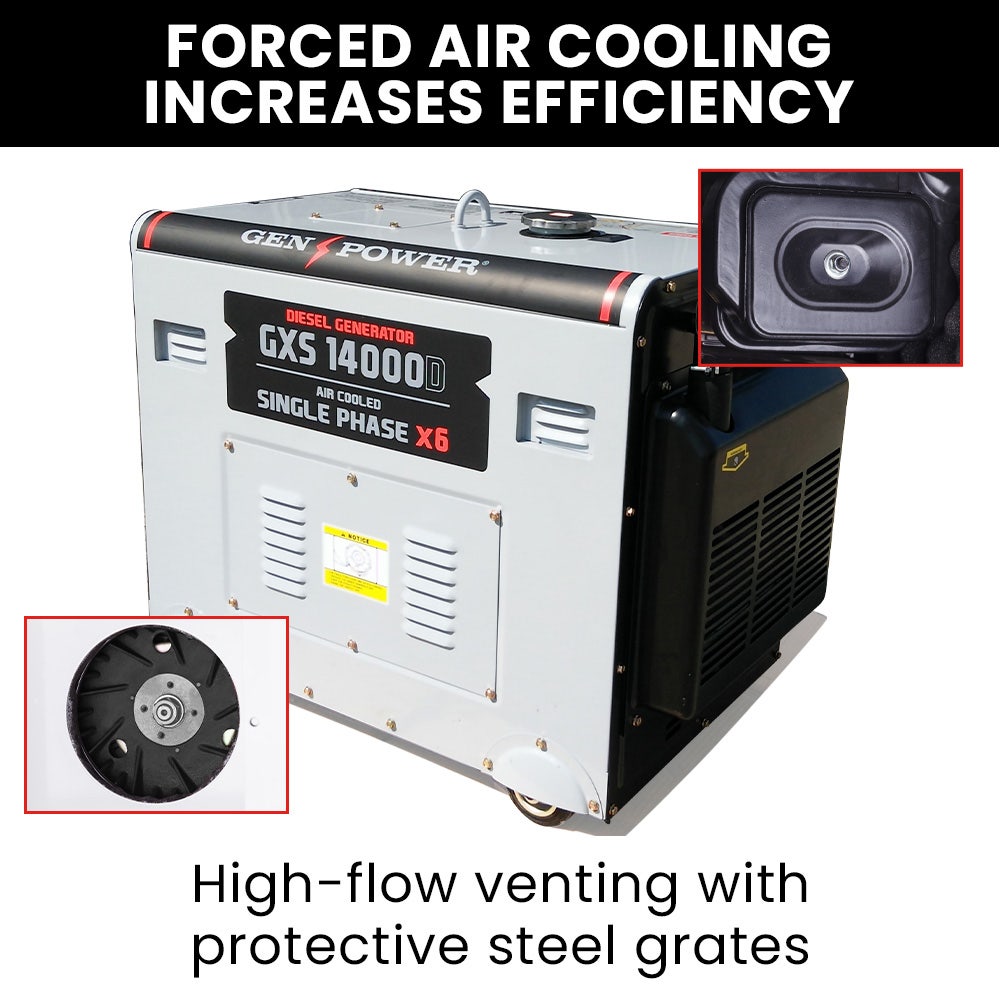 Experience professional-grade backup power with the GENPOWER 8.4kW Commercial Diesel Generator. This robust diesel generator delivers 8.4kW peak output (6kW rated) with convenient electric key start and six 15A outlets, making it perfect for commercial operations, construction sites, emergency home backup, and farming. Diesel power provides superior fuel efficiency, longer runtime, and exceptional durability for demanding applications.