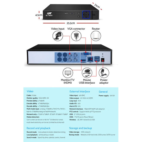 UL-tech CCTV Security System 8CH DVR 4 Cameras 1TB Hard Drive