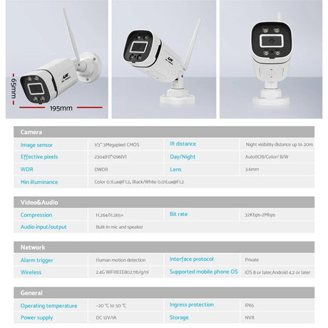 UL-tech Wireless CCTV System 8CH NVR 3MP 8 Bullet Cameras 4TB