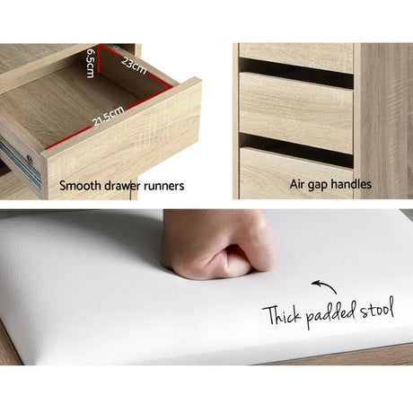 Corner Dressing Table 5 Drawers Oak with Stool - Artiss Vanity Desk