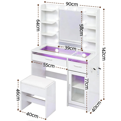 Dressing Table White with 10 RGB LED Bulbs - Artiss Vanity Desk