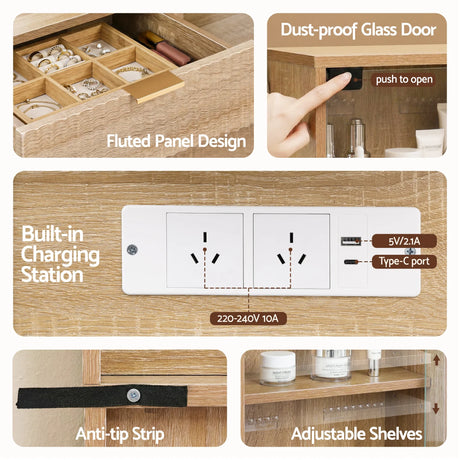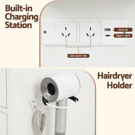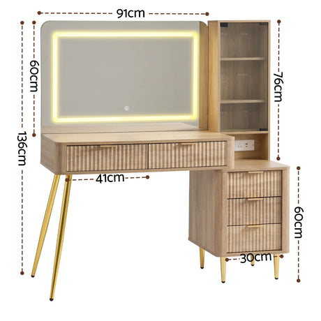 Dressing Table LED Vanity Desk Wood with Charging Station - Artiss