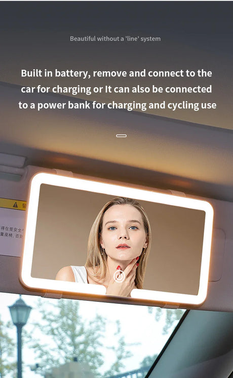Car Sun Visor Makeup Mirror LED Light Tri-Color White - Touch Control Vanity