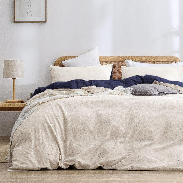 Luxurious Soft Brushed Microfiber 4-Piece Bedding Set Double Beige Blue - Duvet Cover with Fitted Sheet
