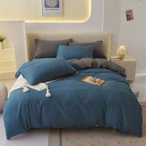 Luxurious Soft Brushed Microfiber 4-Piece Bedding Set Double Dark Blue Grey - Duvet Cover with Fitted Sheet