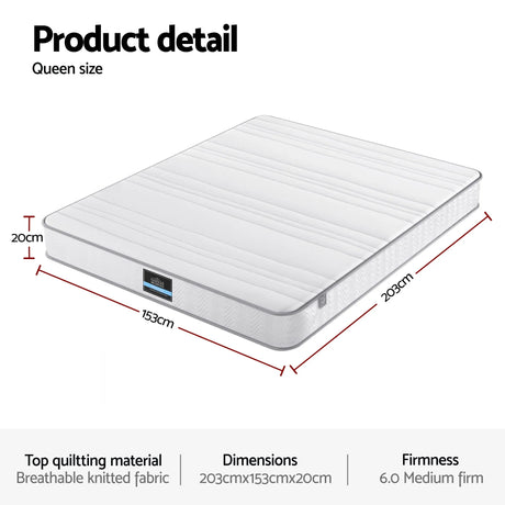 Giselle Queen Mattress 20cm with Reinforced Edge Support Egg-Crate Foam