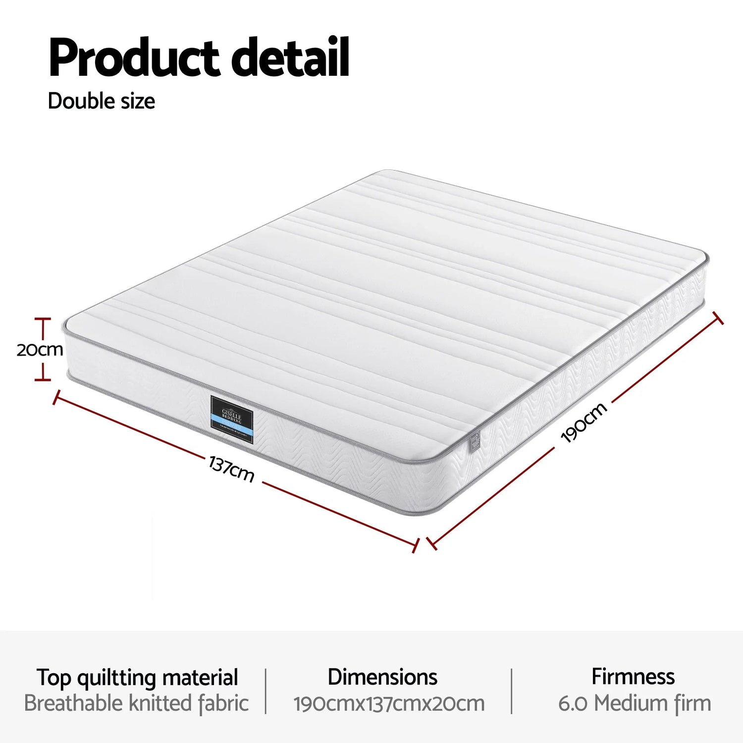 - Size: Double (137cm x 190cm x 20cm)
