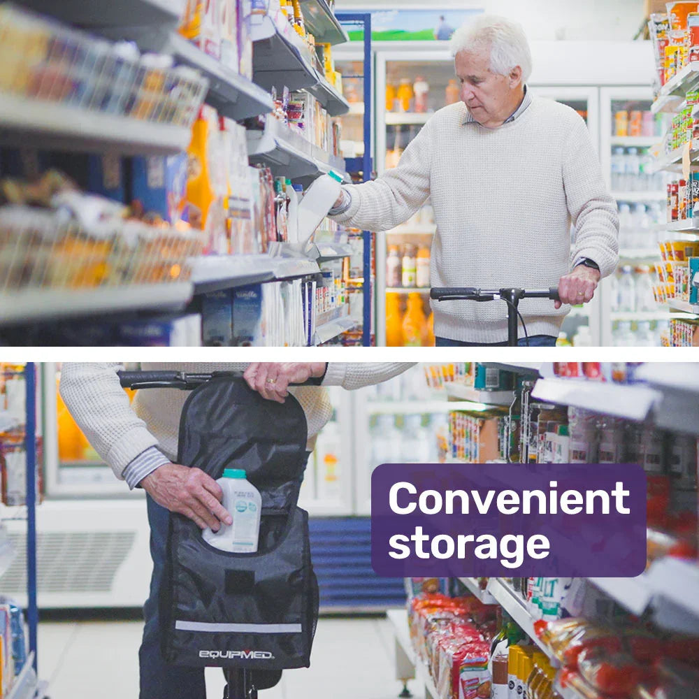 Specifications: Weight: 11.7kg | Adjustable height | Dual brake system | Storage bag included | Black finish | Suitable for indoor and outdoor use