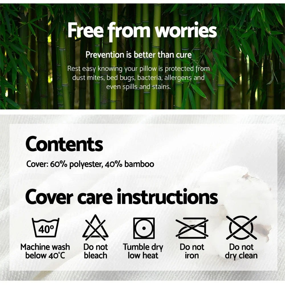 The bamboo fabric cover combines eco-friendly materials with exceptional benefits – it's naturally resistant to dust mites and mold, making these pillows ideal for allergy sufferers. Bamboo fabric offers high breathability that creates a cooler sleeping surface, natural deodorization properties, anti-static qualities, and excellent moisture absorption (hygroscopic). The convenient zipper allows for easy removal and washing, maintaining hygiene and extending pillow life. At 70cm x 40cm with 19cm thickness, these pillows provide generous support for all sleeping positions. The twin pack provides exceptional value, allowing you to outfit your entire bed with premium bamboo memory foam comfort.