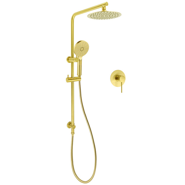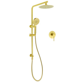 Brushed Gold Twin Shower Set 8" Round Head 3 Modes Handheld Sliding Rail Arm + Mixer