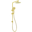 Brushed Gold Twin Shower Set Sliding Rail Arm 8" Round Head 3 Modes Handheld