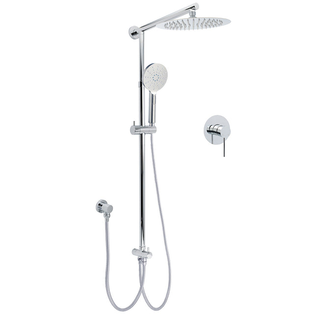 Transform your bathroom with this complete chrome dual shower system featuring integrated mixer for ultimate control and classic elegance. Shop now for this Australian Watermark approved shower set.