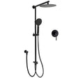 Experience ultimate shower luxury with this complete matte black dual shower head set featuring an integrated mixer. This premium system combines a generous 10" (250mm) round rainfall shower head, versatile 3-mode handheld shower, and quality shower mixer for complete temperature control. Crafted from stainless steel with matte black finish and certified to Australian Standards, this comprehensive shower system delivers spa-like performance with bold contemporary styling.
