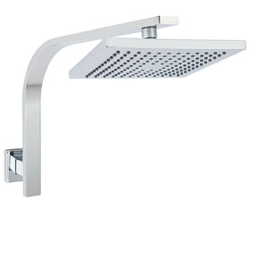 WELS ABS 200mm Square Rain Shower Head & Brass Gooseneck Wall Arm Set WATERMARK