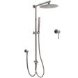 Experience ultimate shower luxury with this complete gun metal dual shower head set featuring an integrated compact mixer. This premium system combines a generous 10" (250mm) round rainfall shower head, quality stainless steel handheld shower, and compact shower mixer for complete temperature control. Crafted from stainless steel with gun metal finish and certified to Australian Standards, this comprehensive shower system delivers spa-like performance with sophisticated contemporary styling.