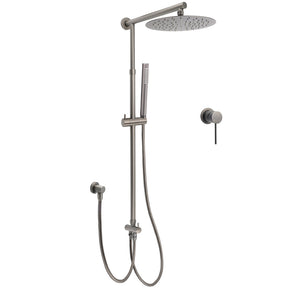 Gun Metal 10" Round Rain Shower Head Set with Compact Mixer - Dual System