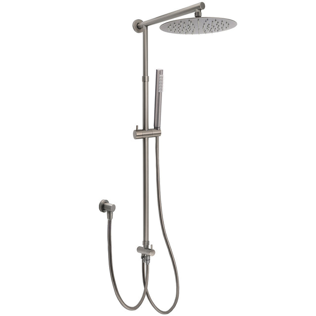 Create a sophisticated, modern statement with this premium gun metal dual shower head set. Featuring a generous 10" (250mm) round rainfall shower head and quality stainless steel handheld shower, this complete set combines contemporary styling with exceptional functionality. Crafted from quality stainless steel with gun metal finish and certified to Australian Standards, this shower system delivers both performance and striking aesthetics.