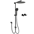 WELS Matt Black Dual 12" Round Shower Head Set Handheld Rail Wall Arm Elbow Inlet Twin Taps