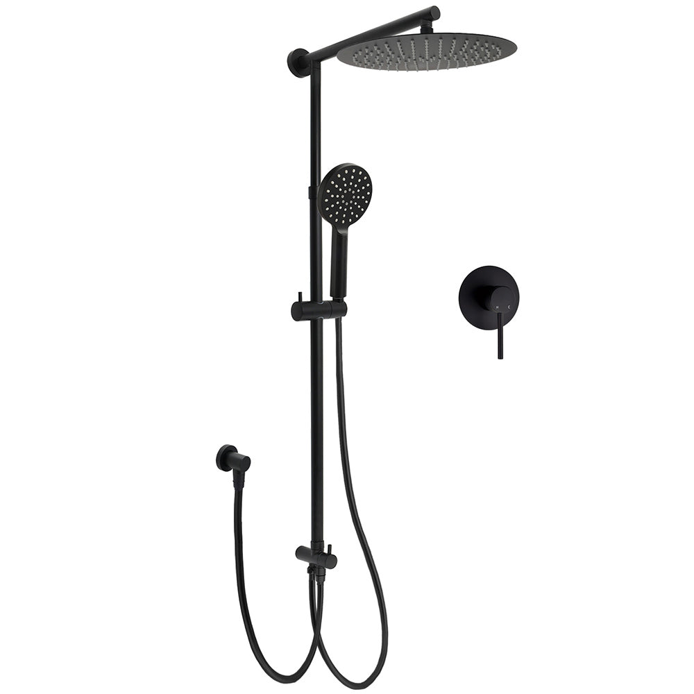 WELS Matt Black Twin Round 12" Shower Head Set Handheld Flexible Rail Wall Arm Mixer