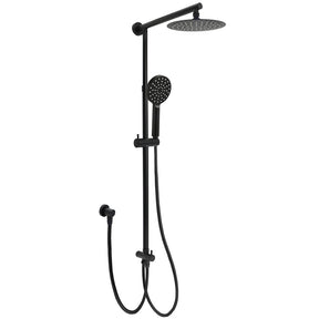 WELS Matt Black Twin Shower 8" Round Head Set 3 Mode Handheld Rose Sliding Rail Elbow Inlet