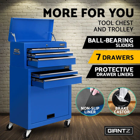 Giantz 7 Drawer Tool Box Cabinet Chest Trolley Storage Garage Toolbox Blue