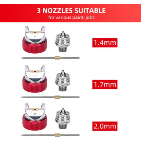 HVLP Spray Gun Kit Gravity Feed Air Paint Sprayer 3 Nozzles 1.4mm 1.7mm 2mm