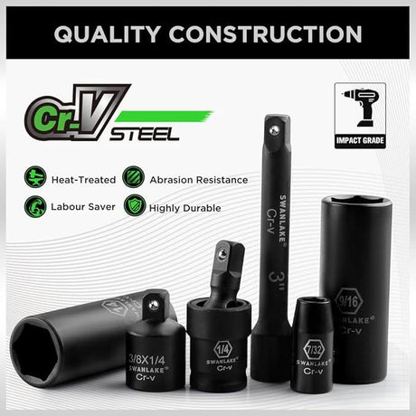 SWANLAKE 56pc 1/4" Drive Impact Socket Set SAE Metric 6-Point