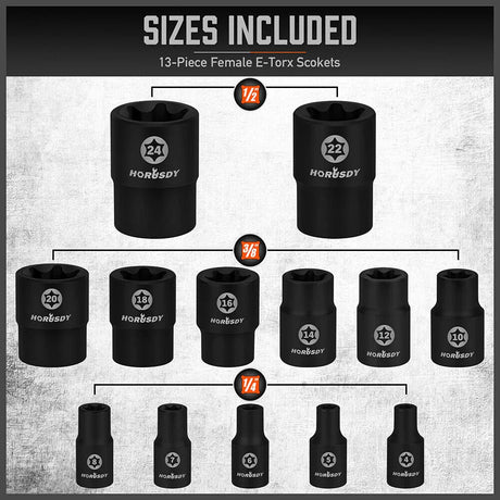 HORUSDY 66pc Torx Bit Socket Set Female External Impact Adapter