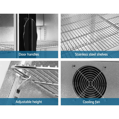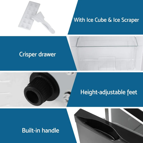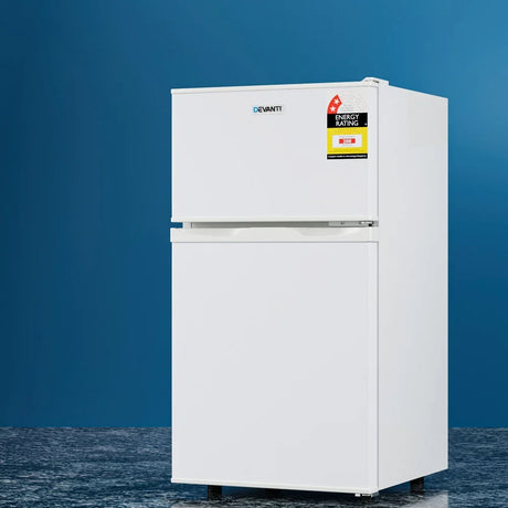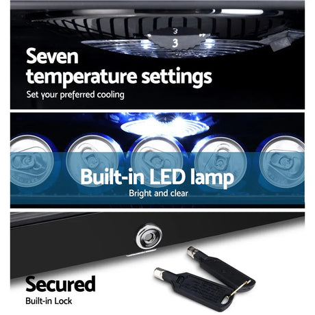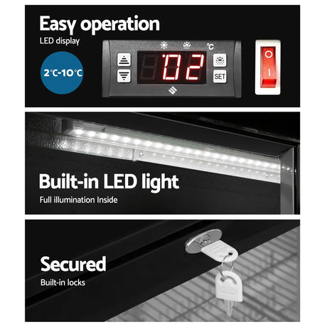Devanti 198L Bar Fridge Dual Glass Door with LED Light - Black