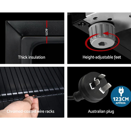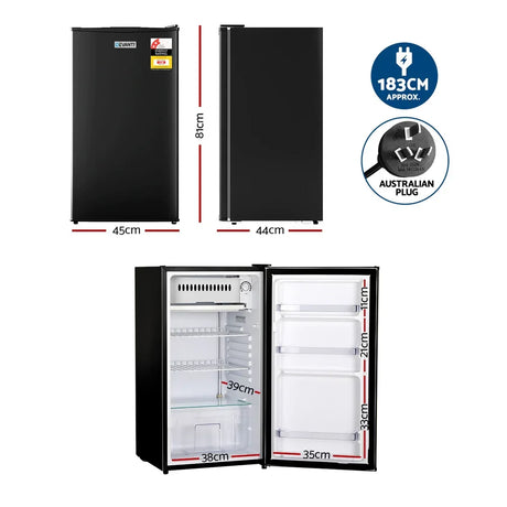 Devanti 115L Bar Fridge Glass Door with LED Light - Black