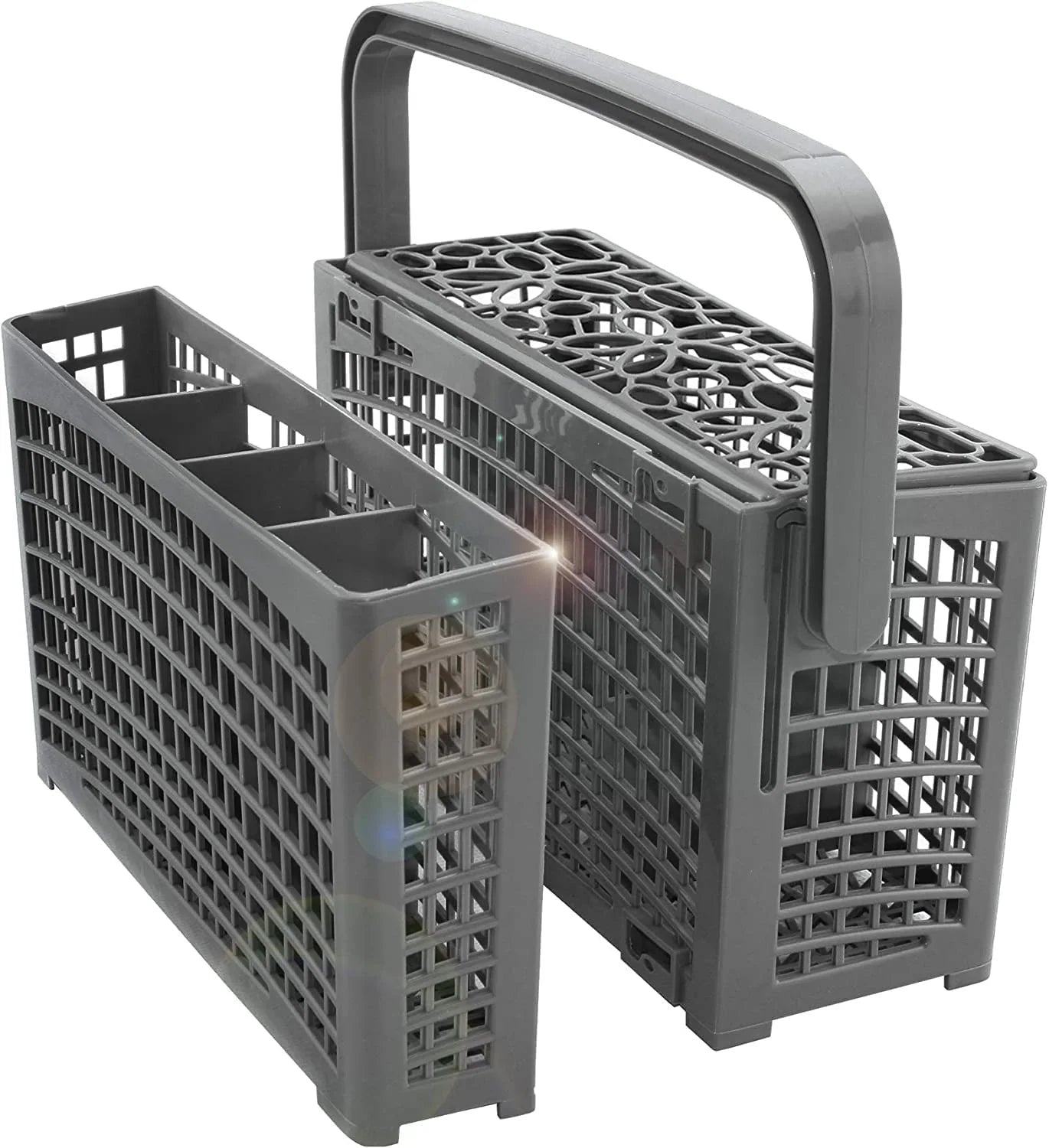 Organize your dishwasher efficiently with the Universal Dishwasher Cutlery Basket. This versatile 2-in-1 design fits most dishwasher brands and models, providing flexible storage for cutlery, utensils, and small kitchen items. The clever dual-compartment design can be used as one large basket or separated into two smaller baskets for maximum flexibility.