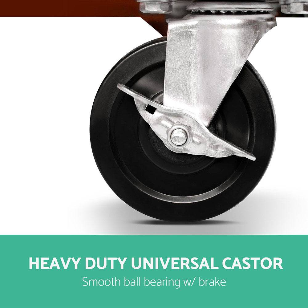 The trolley features 360-degree omni-directional castor wheels for easy transportation around your workspace. Move the trolley effortlessly to bring your tools directly to your work area. Lockable front castors ensure stable positioning during use, preventing unwanted movement while you're accessing tools. This combination of mobility and stability makes it perfect for dynamic workshop environments.