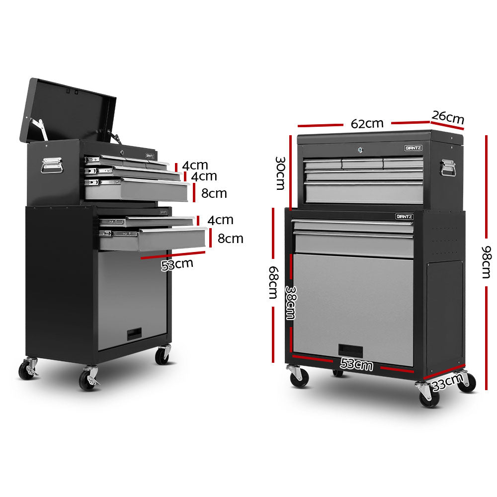 Giantz 7 Drawer Tool Chest & Trolley Combo - Separable Storage System (Black & Grey)