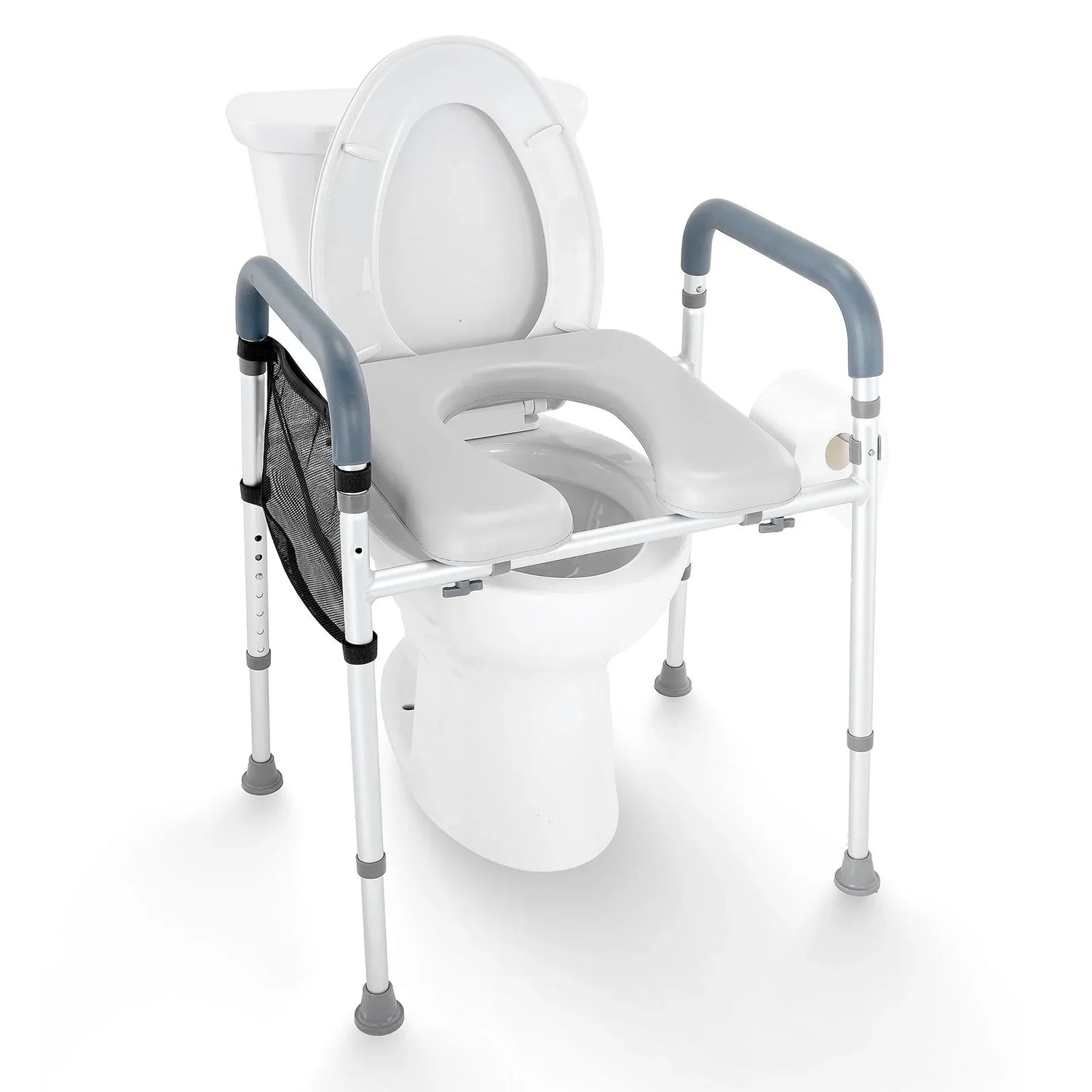 VEVOR Raised Toilet Seat, 7-Position Height Adjustment 655-805 Mm, 158.7 kg Weight Capacity, with Comfort Padded Aluminum Frame, Universal Toilet Seat Riser, for Elderly, Handicap, Pregnant, Medical